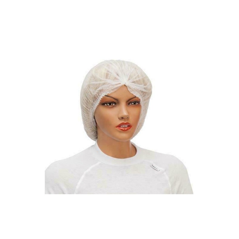 Jednorazová ochranná sieťka na hlavu vyrobená z priedušnej netkanej PP textílie, priemer čiapky: 53 cm, zakončená gumičkou, skladaná harmonikovo.